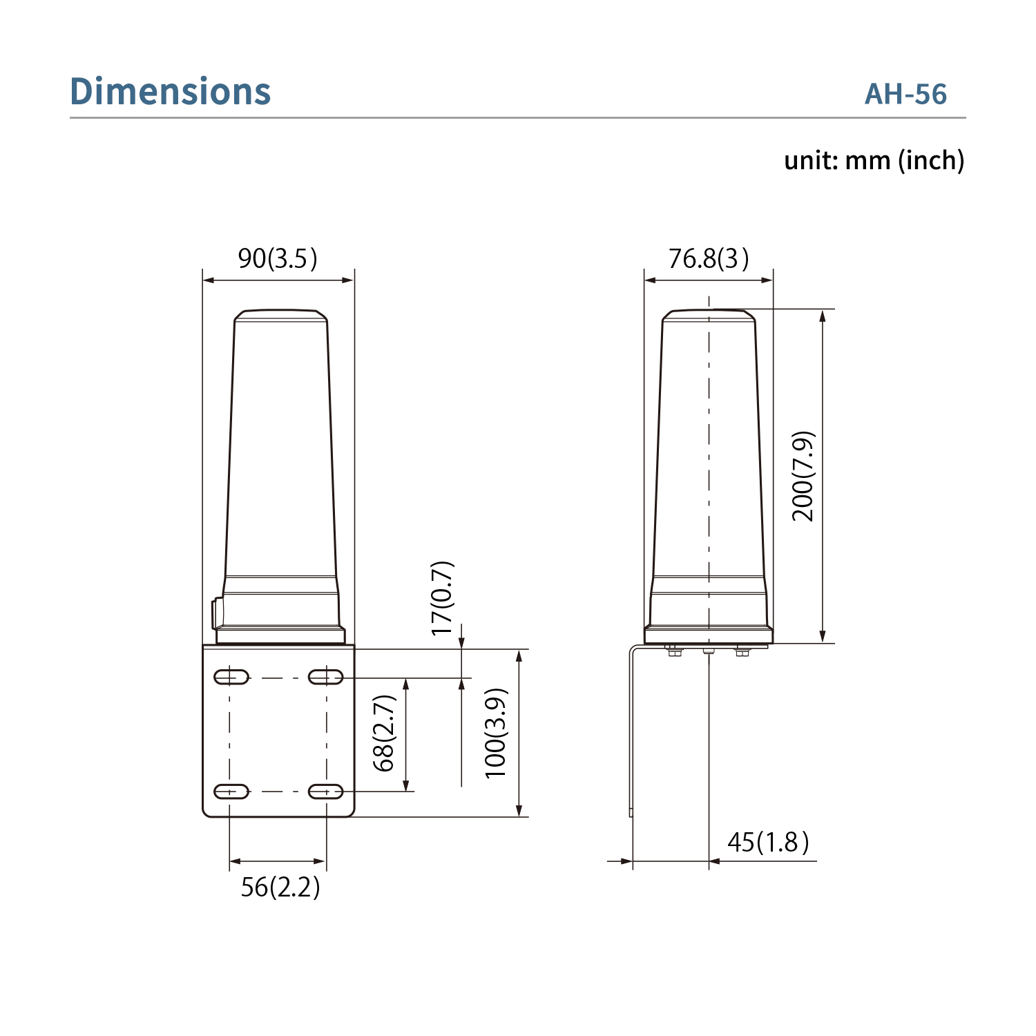 | Dimensions (W x H x D) | 76.8 x 200 x 76.8 mm, 3.0 x 7.9 x 3.0 inch (Bracket not included) |